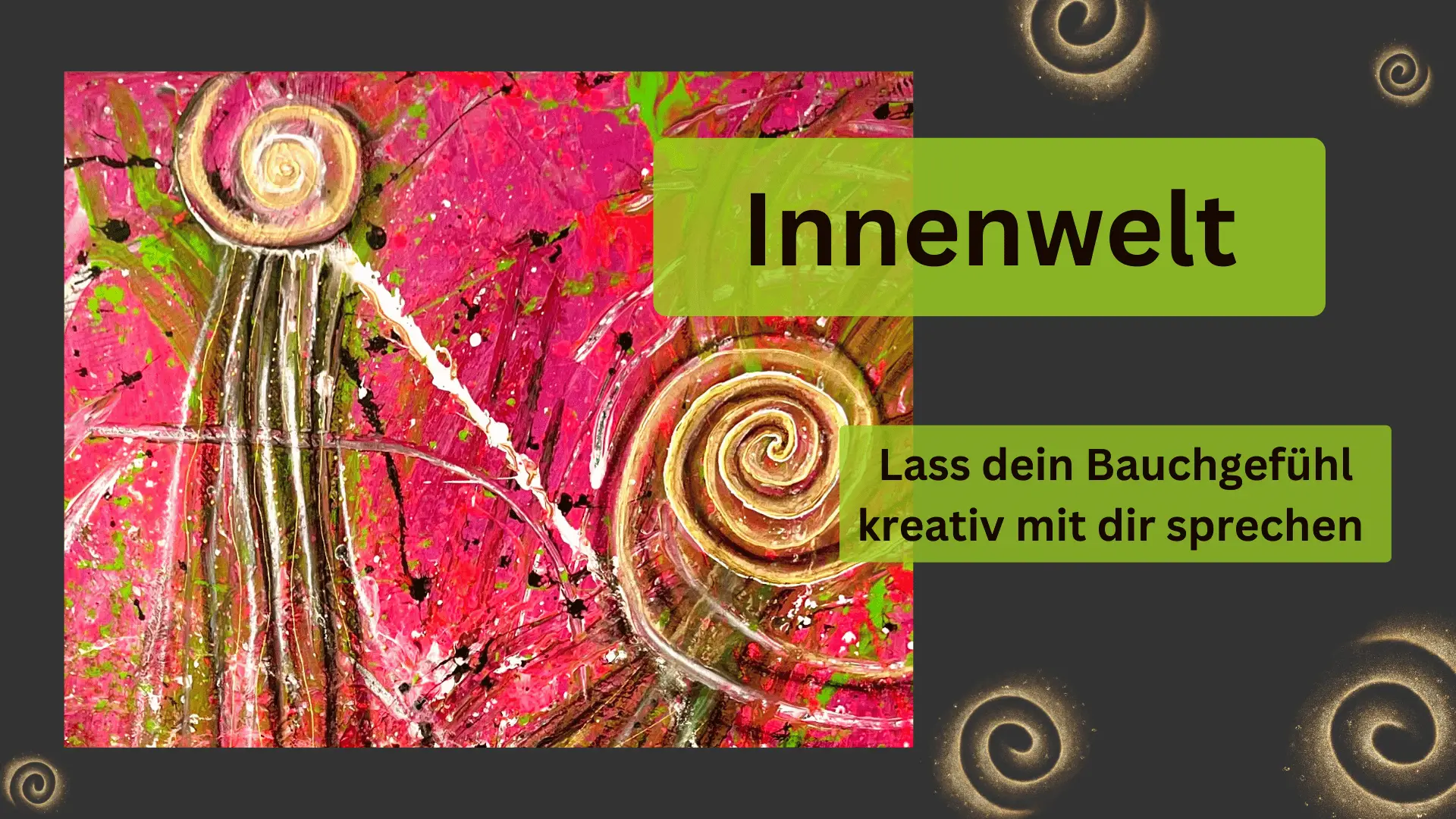 Begib Dich auf eine Entdeckungsreise in Deine innere Welt durch kreatives Bauchgefühl! Kommuniziere mit Dir auf eine ganz neue Art, lasse Deine Intuition frei fließen und entdecke die Antworten, die in intuitiven Bildern auf Dich warten.